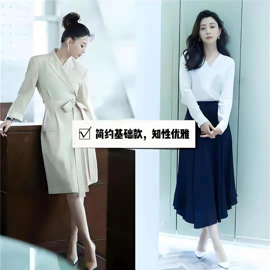 我们选择衣服的时候,应该像下面这位女明星“殷桃”一样,直接选择一件简约基础款的西服裙装,或者是白色V领衬衫搭配藏蓝色半身裙,脚上穿了一双浅口单鞋,这样的穿衣打扮知性优雅,女神范十足。