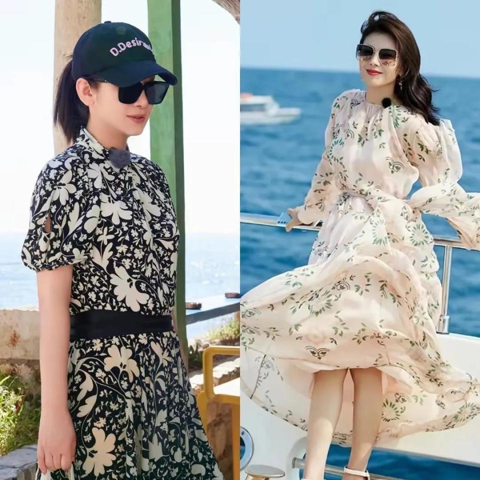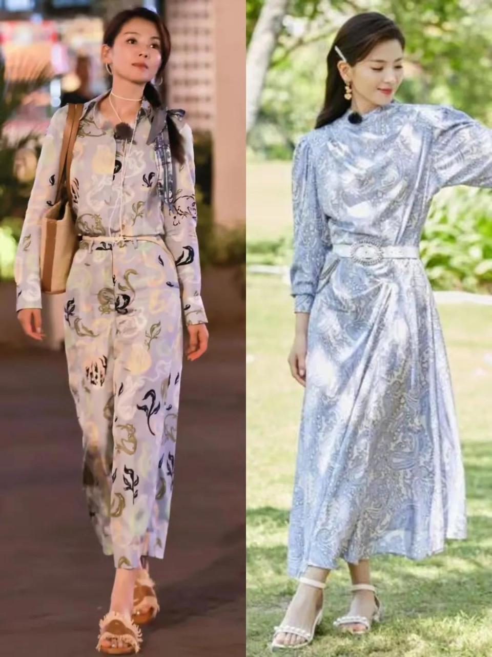 接着咱们来看一下女明星刘涛的印花裙装穿搭,如果真的喜欢穿印花的衣服单品,需要注意的就是,印花和底色的色彩一定要是顺色的色调,这样整件衣服才不会显得过于凌乱,而且要注意的就是裙装的色彩不要超过三个色调,其次,就是衣服的面料也很重要,例如下面左边的这一条连衣裙,如果不是缎绸面料,很难穿出这种高贵的感觉。