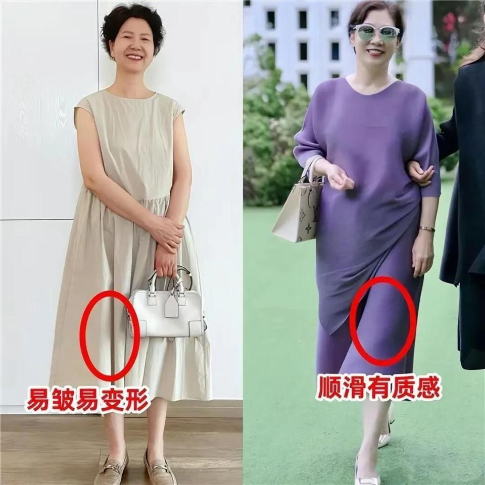 因为有的衣服颜色,如果面料不好的情况下,很容易显得土气廉价,例如下面紫色的连衣裙,如果没有顺滑有质感的材质,而是容易起褶皱变形的衣服材质,那么穿在身上根本就没有这种高贵感。