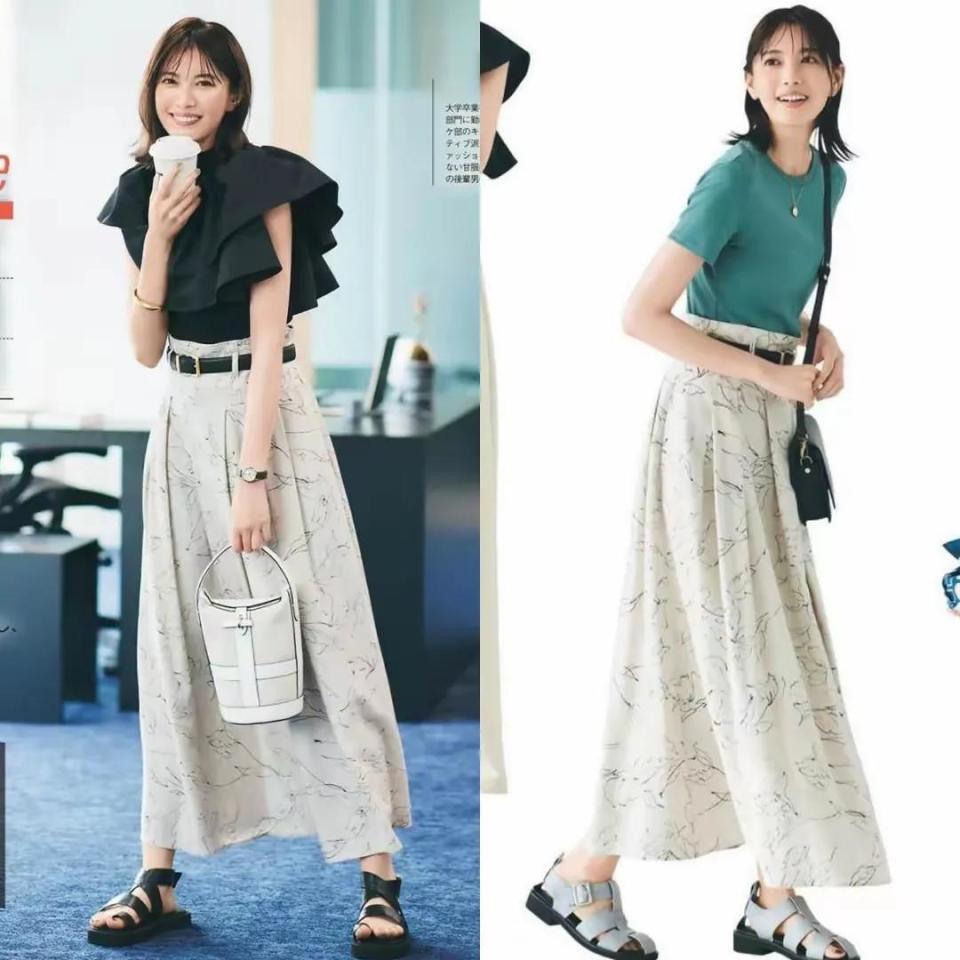 所以有的时候我们穿衣打扮也要根据不同的场合选择不同的穿衣风格,比如下面用一件短袖上衣搭配上印花的伞状半身裙,脚踩一双凉鞋,这一身穿衣打扮非常的清爽优雅,适合穿去上班或者是逛街约会都没有任何问题。